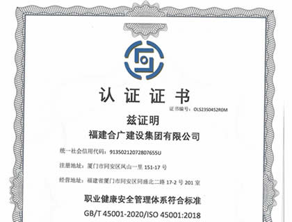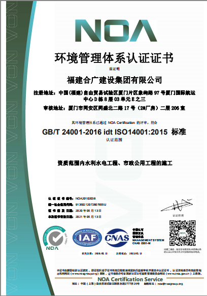 福建合廣建設(shè)集團(tuán)有限公司,注冊(cè)資本5188萬(wàn)元人民幣,公司位于廈門(mén)市同安區(qū)鳳山一里151-17號(hào)。本公司成立于2013年,公司具備市政公用工程、水利水電工程、房屋建筑工程、公路工程、園林綠化等多專(zhuān)業(yè)施工資質(zhì)。企業(yè)從業(yè)人員100多人,各類(lèi)專(zhuān)業(yè)技術(shù)人員70多人,其中高級(jí)職稱(chēng)8人,中級(jí)職稱(chēng)40多人,一級(jí)建造師6人,二級(jí)建造師15多人。